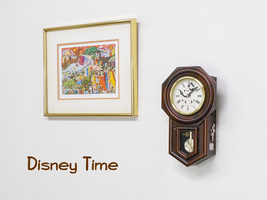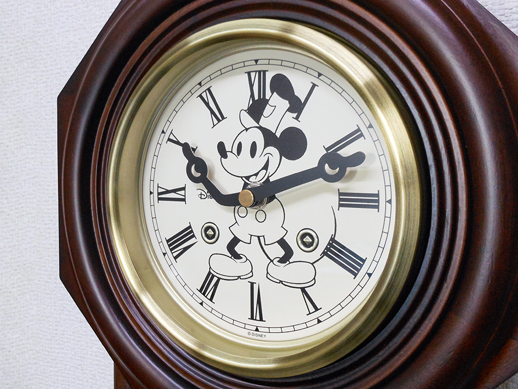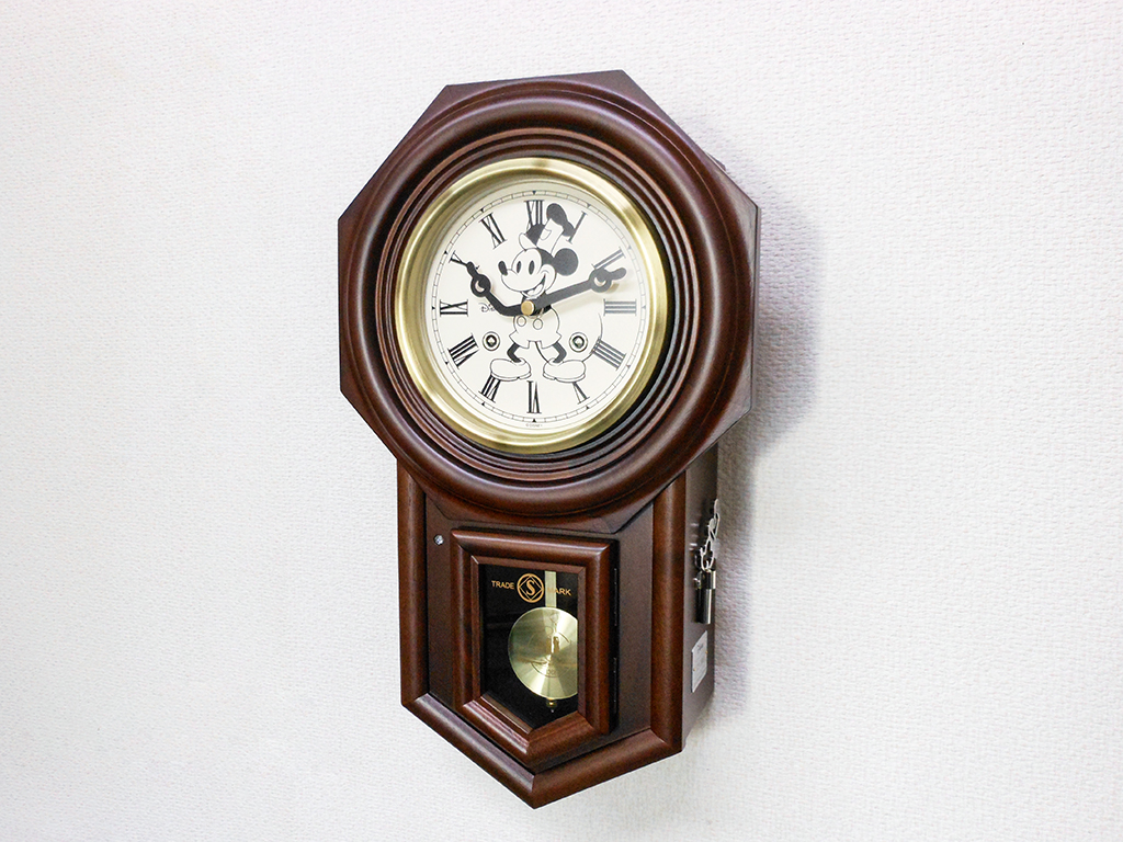 ミッキーハンズの天然木枠振子付きウォールクロック。