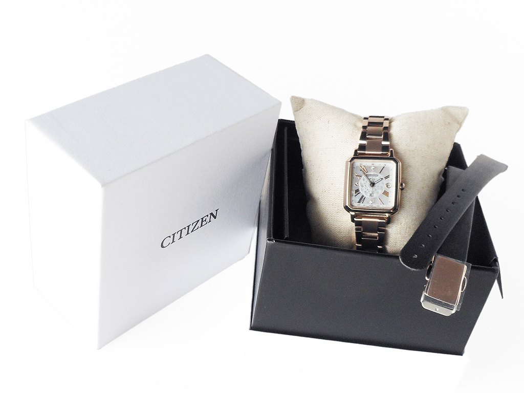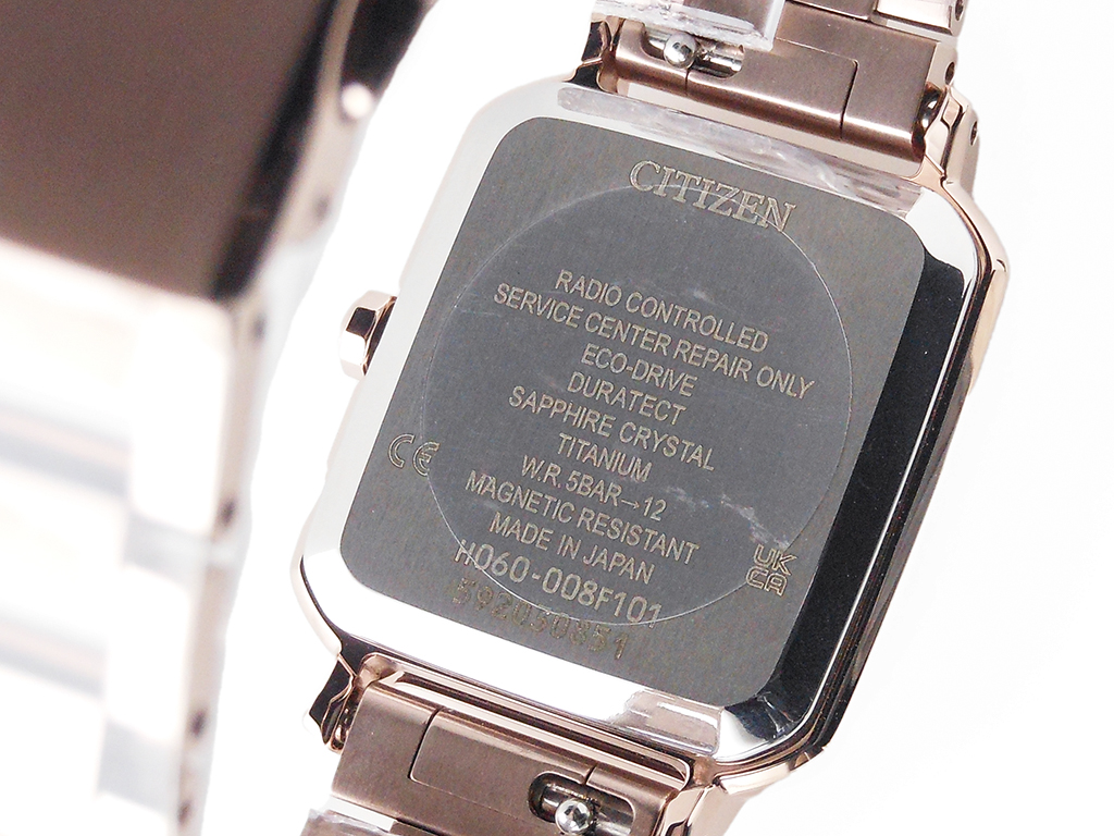 Cal.H060・光発電エコ・ドライブ・精度±15秒/月(非受信時)・持続時間:光発電約3年(パワーセーブ作動時)・日中米欧電波受信・重量35g・厚み7.8mm/ケースサイズ横 25mm・スーパーチタニウムケース・ケース表面処理:デュラテクトサクラピンク(サクラ色)・スーパーチタニウムバンド・三ツ折れプッシュタイプバンド中留・バンド調整可能サイズ118~182mm・サファイアガラス(無反射コーティング)・5気圧防水・耐磁1種・白蝶貝文字板・夜光(針)・裏ぶた刻印あり・充電残量表示機能・充電警告機能・過充電防止機能・パワーセーブ機能・フル充電時約3年可動(パワーセーブ作動時)・日中米欧電波受信・受信局自動選択機能・定時受信機能・強制受信機能・パーペチュアルカレンダー・日付表示・ダイレクトフライト・ワールドタイム機能(24時差)・サマータイム機能・パーフェックス(JIS1種耐磁、衝撃検知機能、針自動補正機能)・シンプルアジャスト・限定BOX・原産国:日本製・1年間メーカー保証(MY CITIZENご登録により2年間) ※重量、厚み、サイズは参考値としてご参照ください。※価格及び仕様は、予告なく変更する場合があります。