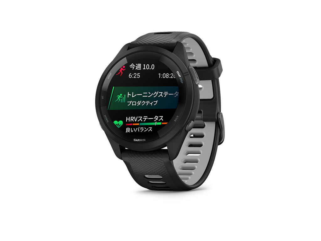 Forerunner 265は、色鮮やかなAMOLEDタッチディスプレイを備えたGPSランニングスマートウォッチです。