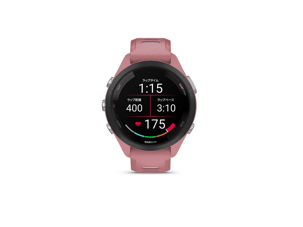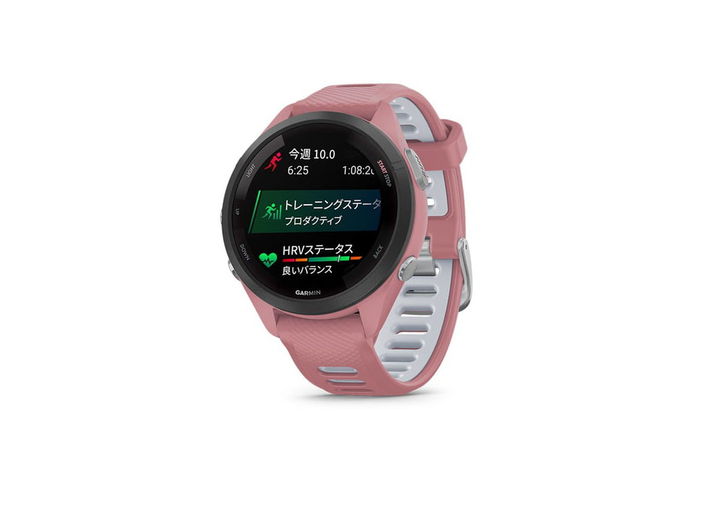 Forerunner 265は、色鮮やかなAMOLEDタッチディスプレイを備えたGPSランニングスマートウォッチです。