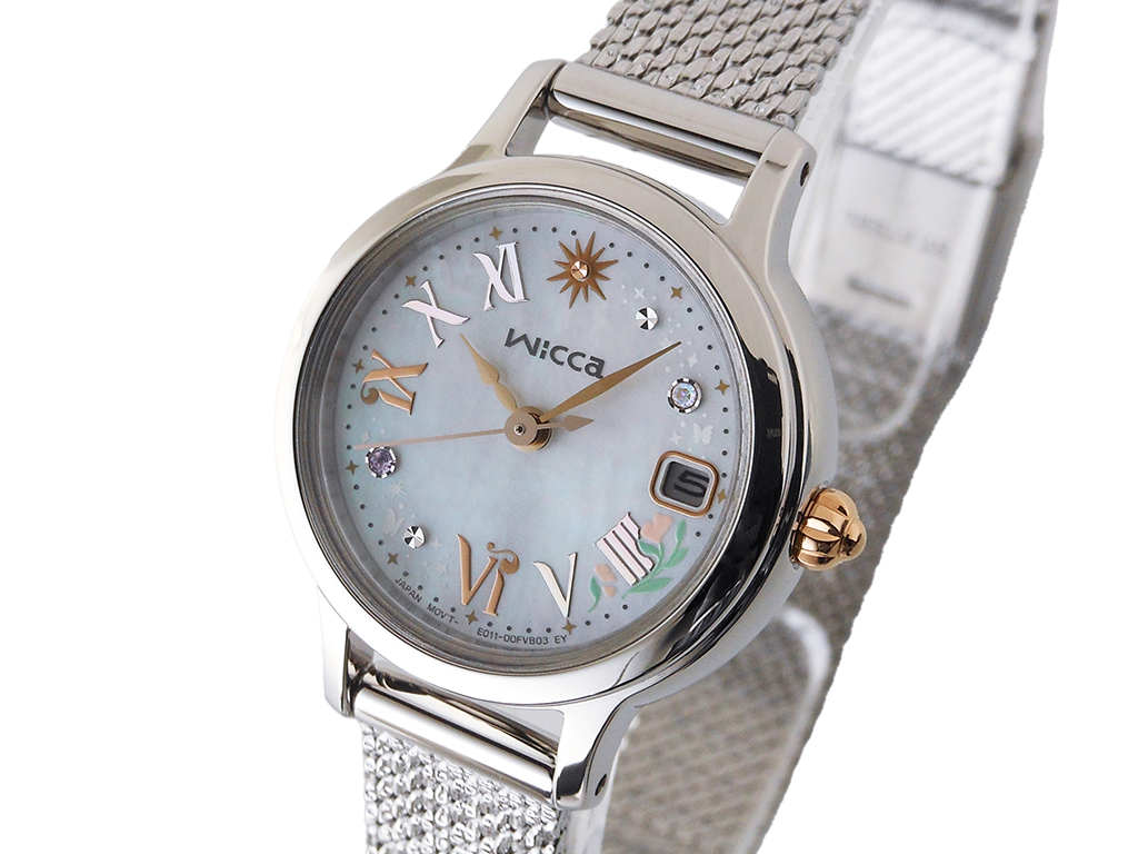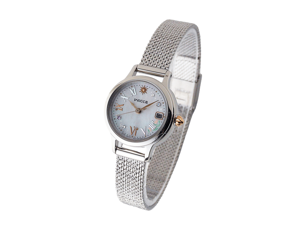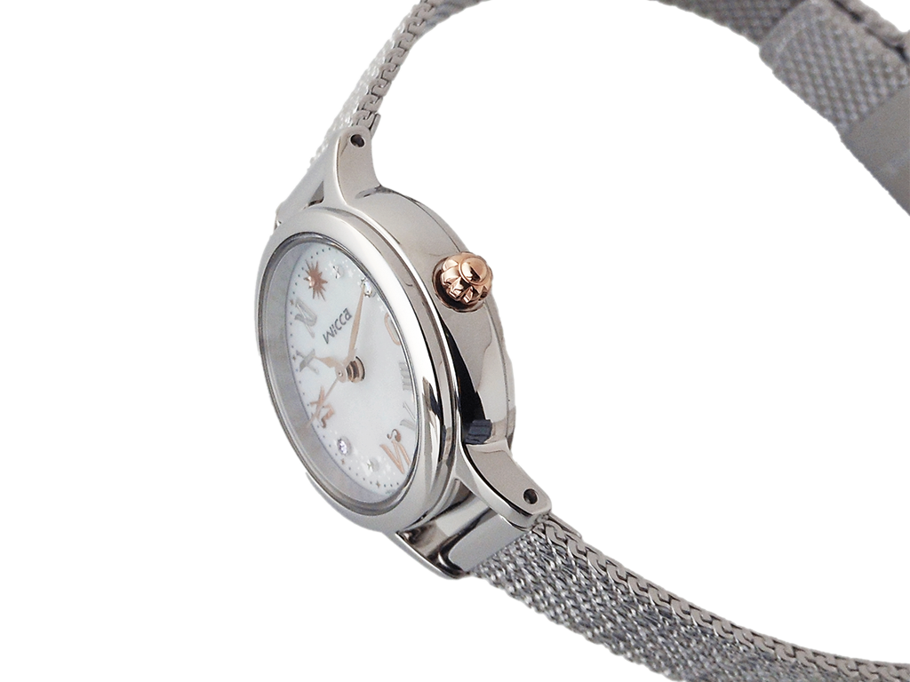 Cal.E011・精度±15秒/月・光発電機能・充電警告機能・過充電防止機能・クイックスタート機能・フル充電時約6ヶ月可動・日付表示・日付早修正機能・持続時間:光発電約6ヶ月・ケースサイズ24.0mm・厚さ7.3mm・ステンレスケース・クリスタルガラス・ステンレスバンド(サイズフリータイプ)・5気圧防水・文字板部品:一部再生素材・白蝶貝文字板・文字板:2ポイントクリスタルガラス入・バンド調整可能サイズ130~183mm・限定BOX・保証:1年間メーカー保証