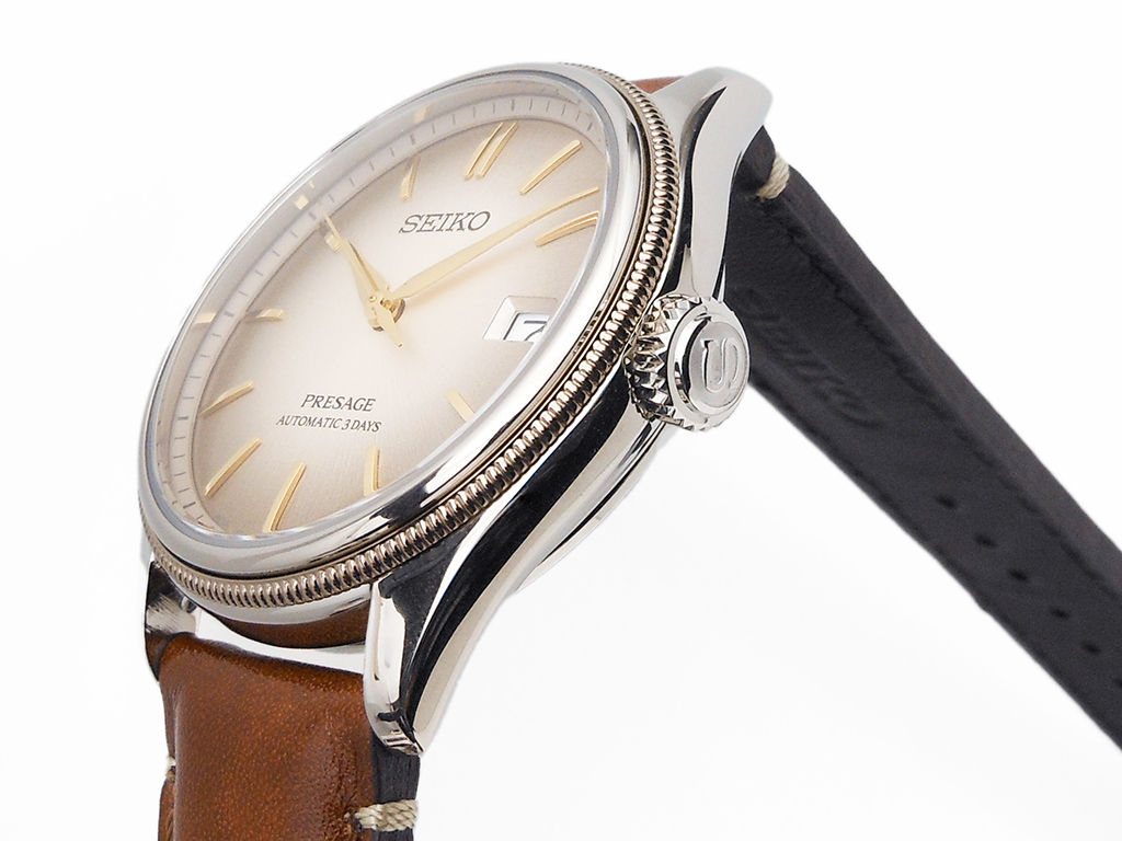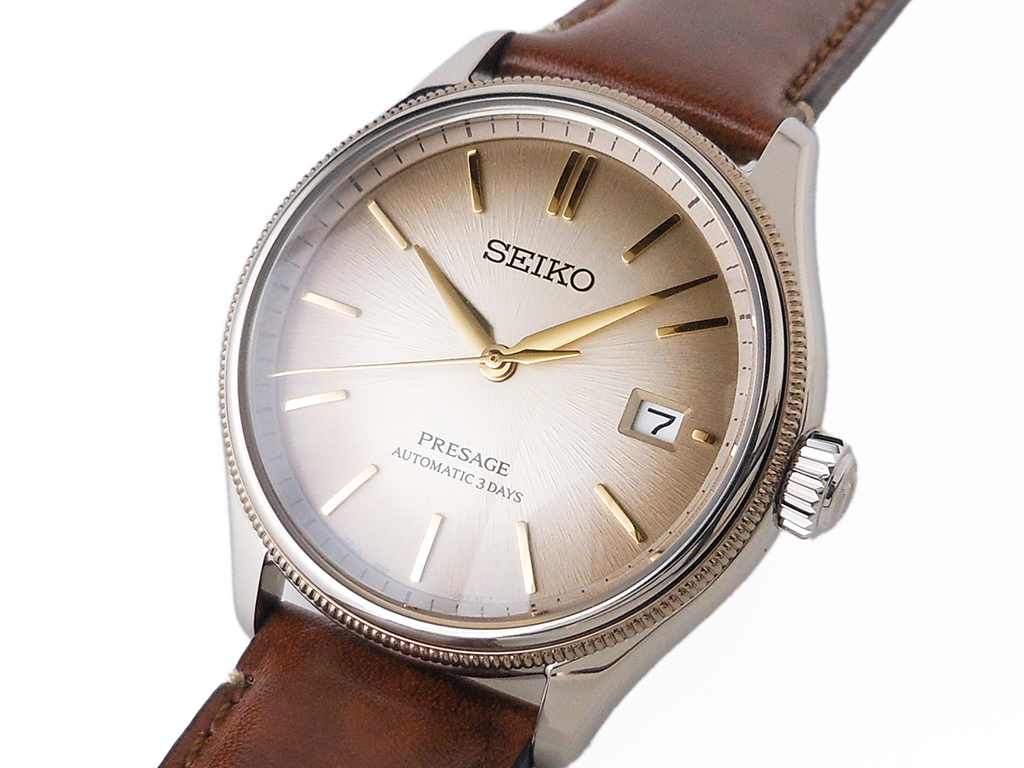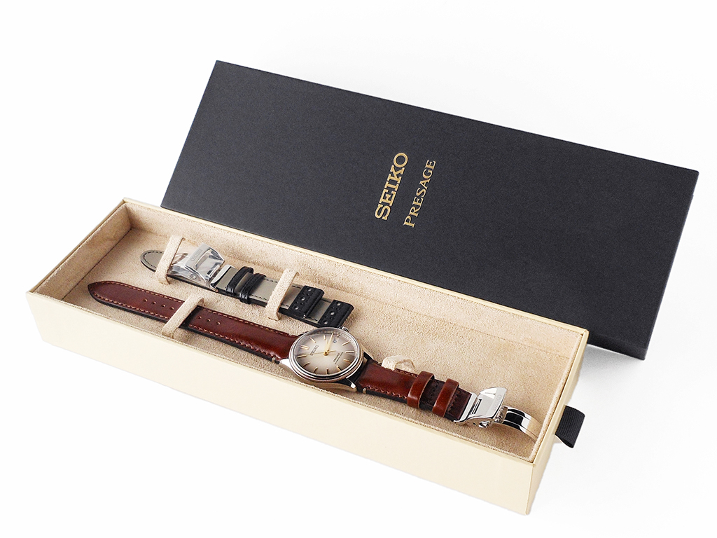Cal.6R5H・メカニカル 自動巻(手巻つき)・精度:日差+25秒~-15秒・駆動期間:最大巻上時約72時間持続・石数24石・秒針停止機能・ステンレスケース・裏ぶた:ステンレスとガラス・ケースコーティング:ダイヤシールド・厚さ:13.0mm横:40.2mm縦:46.0mm・デュアルカーブサファイアガラス(内面無反射コーティング)・牛皮革バンド(牛皮革替えバンド付き)・ワンプッシュ三つ折れ方式バンド中留・腕周り長さ(最長)190.0mm・日常生活用強化防水(10気圧)・耐磁・重さ82.8g・シースルー/スクリューバック ※実際の製品では、製造上の理由により、裏ぶたの向きが異なる場合があります。