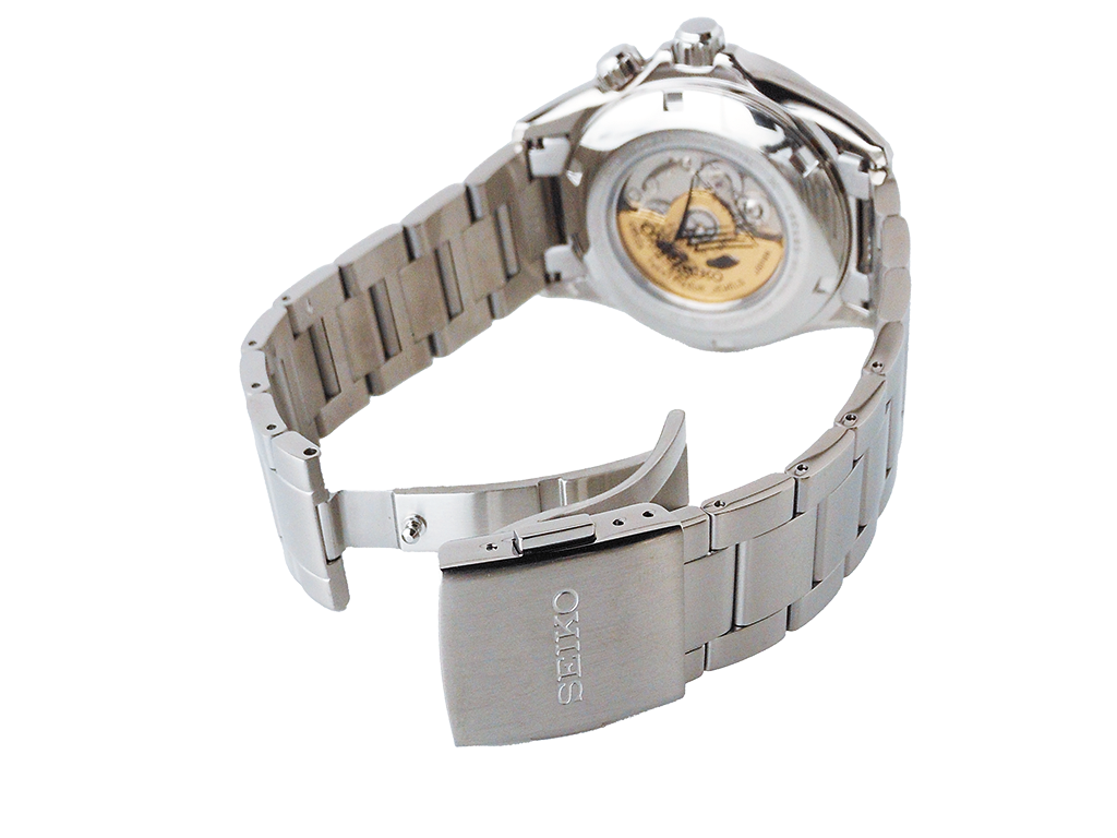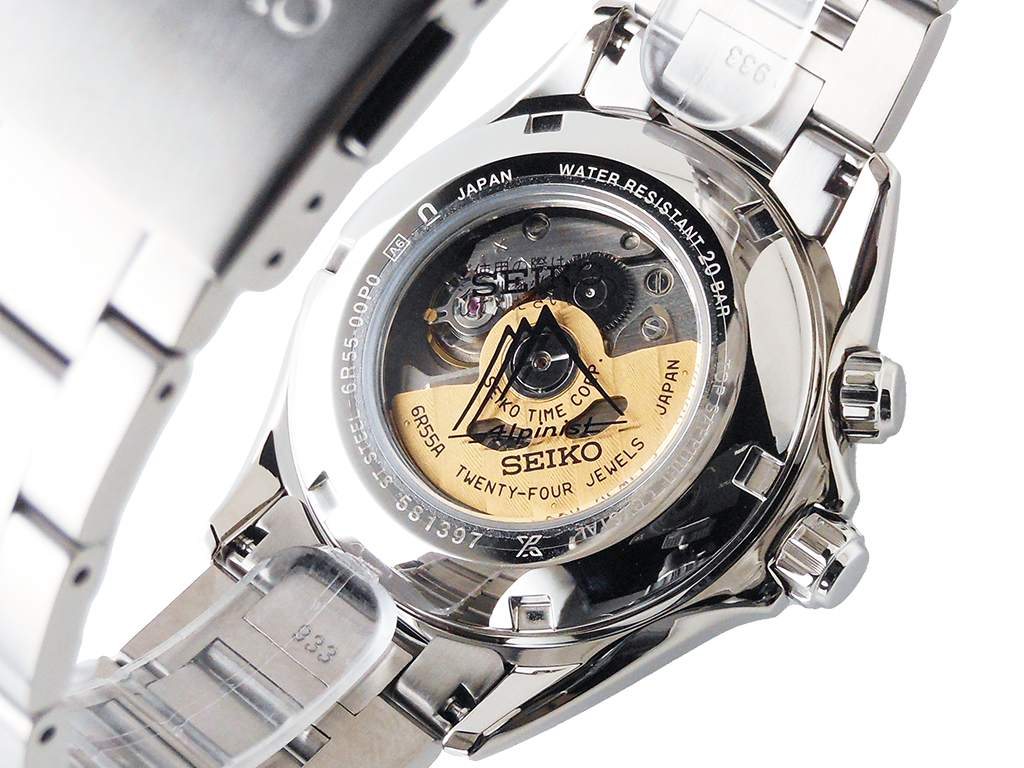 Cal:6R55・駆動方式:メカニカル 自動巻(手巻つき)・精度:日差+25秒~-15秒・最大巻上時約72時間持続・石数24石・秒針停止機能・ステンレスケース(ダイヤシールドコーティング)・裏ぶた:ステンレスとガラス・ケースサイズ:厚さ:12.7mm横:39.5mm縦:46.4mm・レンズつきサファイアガラス(内面無反射コーティング)・ルミブライト(針・インデックス)・ワンプッシュ三つ折れ方式バンド中留・腕周り長さ(最長)195.0mm・日常生活用強化防水(20気圧)・耐磁・重さ147.0g・簡易方位計つき内転リング・ねじロック式りゅうず・シースルー/スクリューバック ※実際の製品では、製造上の理由により、裏ぶたの向きが異なる場合があります。