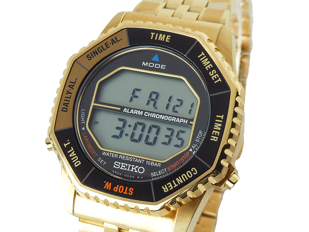 Cal.A824・電池式クオーツ・精度:平均月差±20秒・電池寿命約3年・ロータリースイッチ機能・カウンター機能・ストップウオッチ機能(1/100秒計測 99時間59分59秒)・アラーム機能・タイマー機能(1分単位で最大100分)・フルオートカレンダー機能(2074年12月31日まで)・デュアルタイム表示機能・電池寿命切れ予告機能・内部照明(LED)・ケース材質:ステンレス・ケースサイズ:厚さ:10.6mm 横:37.0mm 縦:43.5mm・ガラス:ハードレックス・ワンプッシュ三つ折れ方式バンド中留・腕周り長さ(最長)195.0mm・日常生活用強化防水(10気圧)・重さ109.0g・裏ぶた「LIMITED EDITION」表記・裏ぶたシリアルナンバー入り・回転ベゼル・ナイロン替えバンドつき・スクリューバック