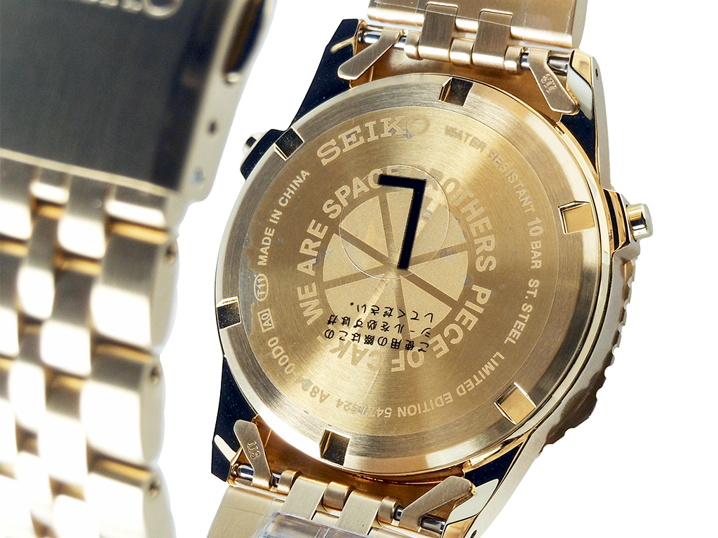 裏蓋に“WE ARE SPACE BROTHERS PIECE OF CAKE”のシンボルマーク。「LIMITED EDITION」とシリアルナンバー刻印。