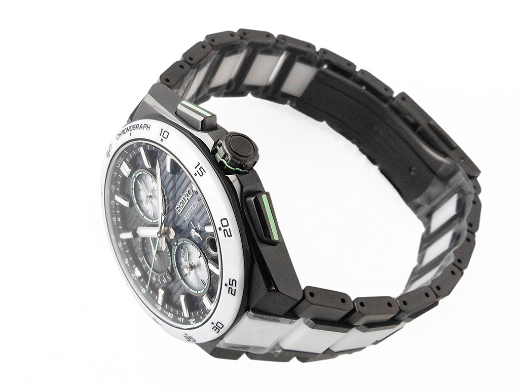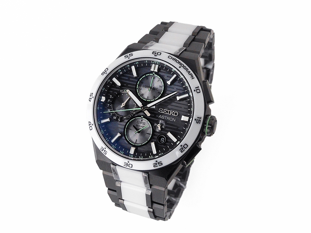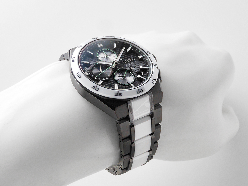 ベゼル、ブレスレットの中央列にセラミクスを採用した特別仕様。