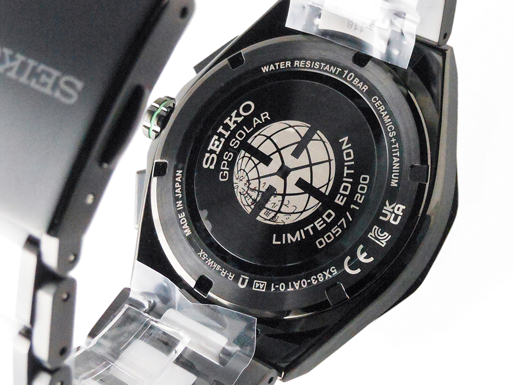 Cal.5X83・駆動方式:ソーラーGPS衛星電波修正・精度:非受信時平均月差±15秒・駆動期間:フル充電時約6ヶ月間 パワーセーブ時約2年・石数:14石・過充電防止機能・パワーセーブ機能・ストップウオッチ機能(1/20秒計測 12時間計)・パーペチュアルカレンダー機能(2100年2月28日まで)・ワールドタイム機能(38タイムゾーン)・デュアルタイム表示機能・曜日表示機能・パワーリザーブ表示機能・タイムトランスファー機能・衛星電波受信によるタイムゾーン修正機能・スーパースマートセンサー機能・捕捉衛星数表示機能・受信結果表示機能・DST(サマータイム)機能・受信オフ機能(機内モード)・針位置自動修正機能・ケース材質:純チタンケースとセラミックス/裏ぶた:純チタン・ケースサイズ:厚さ:13.4mm横:43.4mm縦:49.5mm・ガラス材質:デュアルカーブサファイア(スーパークリア コーティング)・ルミブライト(針・インデックス)・ワンプッシュ三つ折れ方式中留・腕周り長さ(最長)190.0mm・日常生活用強化防水(10気圧)・耐磁・重さ:123.0g・耐メタルアレルギー・スマートアジャスター機構つき中留・スクリューバック※実際の製品では、製造上の理由により、裏ぶたの向きが異なる場合があります。