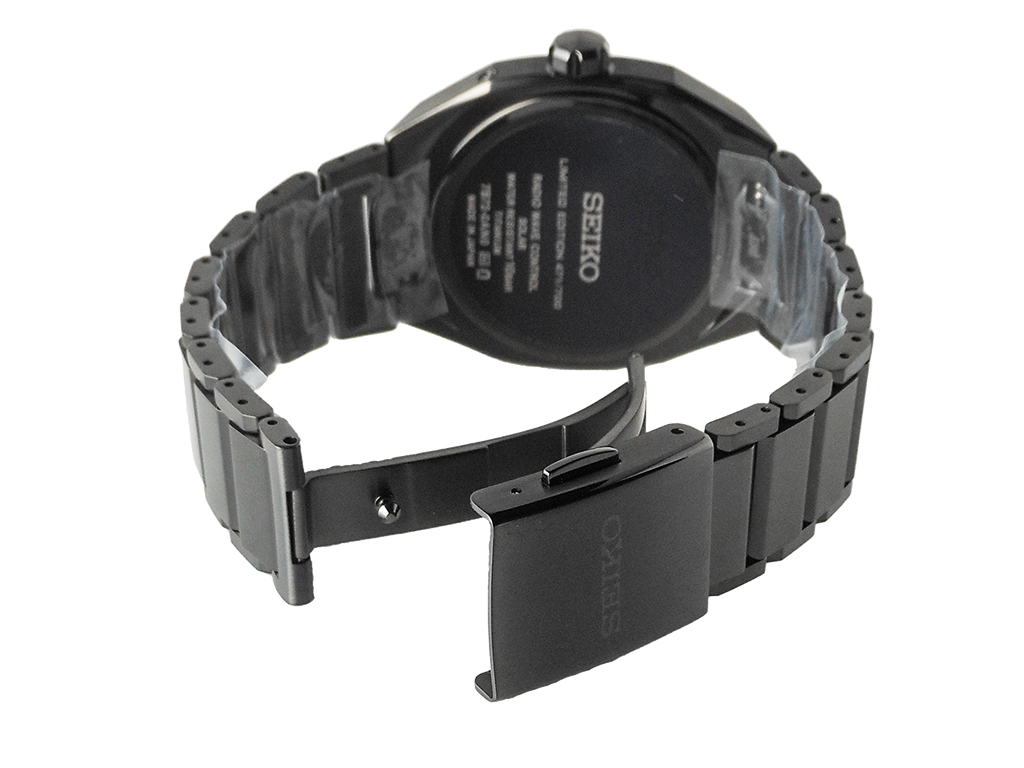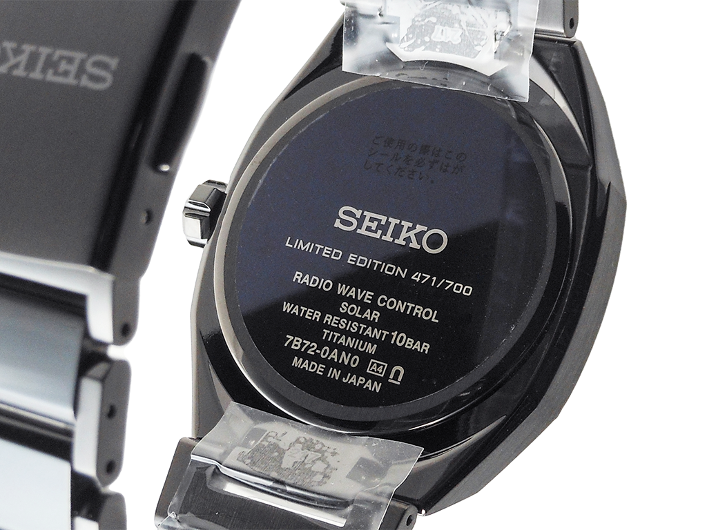 Cal.7B72・駆動方式:ソーラー電波修正(精度:非受信時平均月差±15秒)・フル充電時約9ヶ月間 パワーセーブ時約2年・石数6石・過充電防止機能・即スタート機能・パワーセーブ機能・フルオートカレンダー機能(2099年12月31日まで)・自動受信機能・強制受信機能・受信結果表示機能・時差修正機能・針位置自動修正機能・純チタンケース/バンド・ケースサイズ厚さ:厚さ:9.5mm横:39.6mm縦:45.4mm・サファイアガラス(スーパークリア コーティング)・ルミブライト夜光(針・インデックス)・ワンプッシュ三つ折れ方式バンド中留・腕周り長さ(最長)188.0mm・日常生活用強化防水(10気圧)・耐磁・重さ90.0g・裏ぶた「LIMITED EDITION」表記・裏ぶたシリアルナンバー入り・耐メタルアレルギー・スマートアジャスター機構つき中留