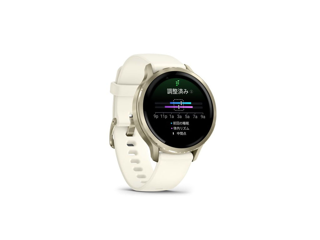睡眠の質を採点する睡眠スコアや、必要な睡眠時間や改善方法のアドバイスを受け取れます。睡眠段階や昼寝を記録し、HRVステータスや皮膚温3などの確認して、健康状態をより深く理解できます。新機能の「睡眠アライメント」により、自分の体内リズムとの整合性や睡眠の一貫性をチェックすることもできます。