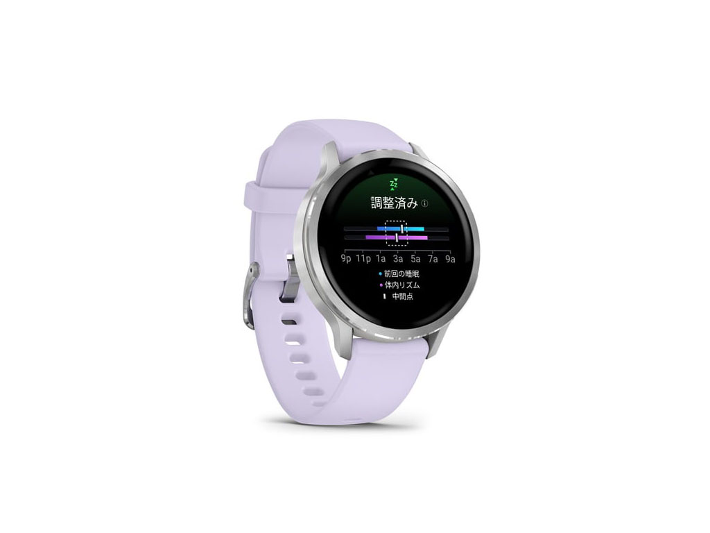 睡眠の質を採点する睡眠スコアや、必要な睡眠時間や改善方法のアドバイスを受け取れます。睡眠段階や昼寝を記録し、HRVステータスや皮膚温3などの確認して、健康状態をより深く理解できます。新機能の「睡眠アライメント」により、自分の体内リズムとの整合性や睡眠の一貫性をチェックすることもできます。